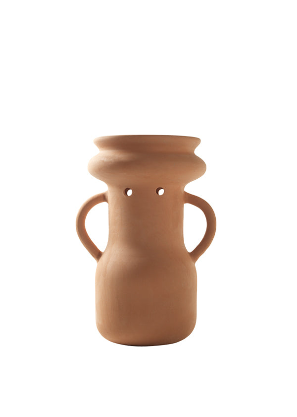 The Gardenias Vases form part of the Gardenias collection by Jaime Hayon. Designed in terracotta to complement the outdoor furniture collection, the vases are curvaceous with a subtle organic silhouette. Available in three styles, the vases resemble mudrock buildings and ancient desert homes. The terracotta is shaped by hand with a waterproof treatment, making the vases fully functional and versatile.