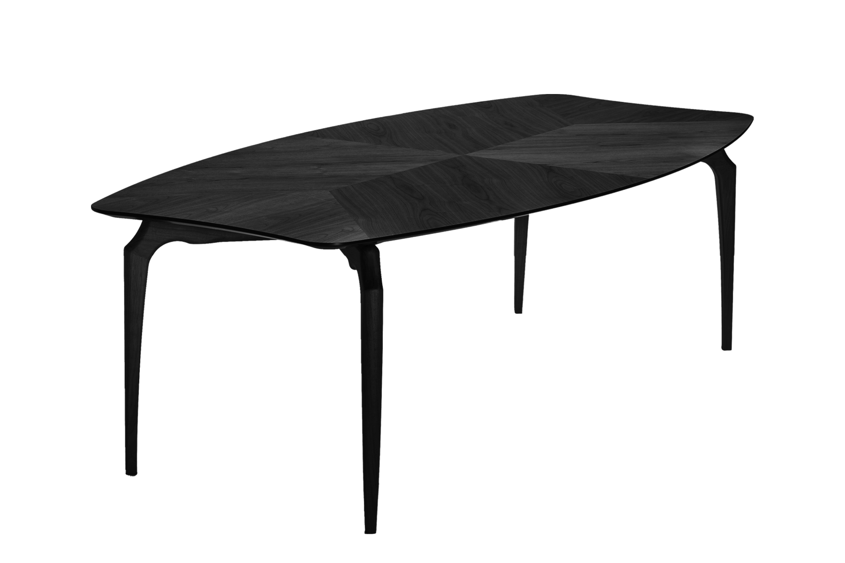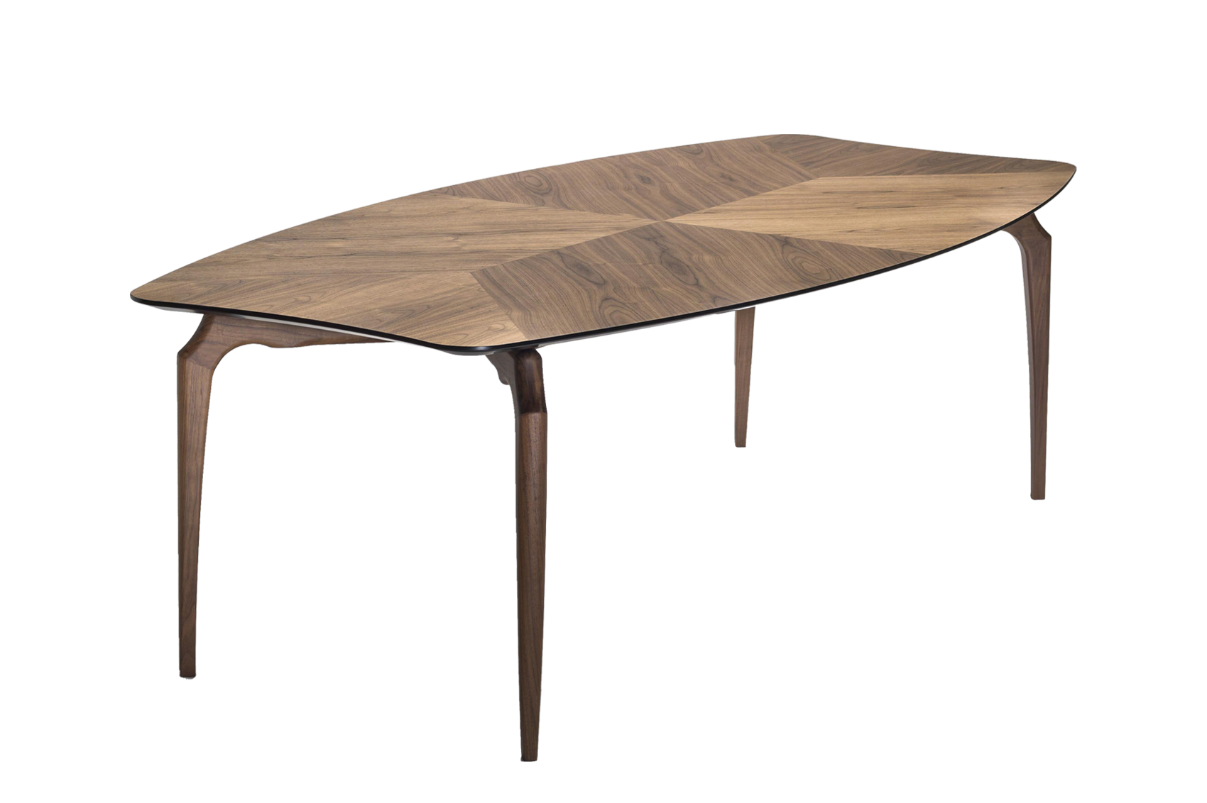 Oscar Tusquets decided to use some of the distinctive elements of the Gaulino chair in this elegant table, available in various sizes and finishes. Inspired by Antonio Gaudi and Carlo Mollino, Tusquets created 'Gaulino' in 1987. It was an industrially hand-crafted chair with a contoured wooden frame, slender tapering legs and smooth rich leather. The artisanal chair became a modern icon of 20th-century design. The table was designed in 2011 as a complement of the chair. The structure sits comfortably in space. With a visual lightness supported by the elegant top, the table is both eye-catching and beautifully functional.