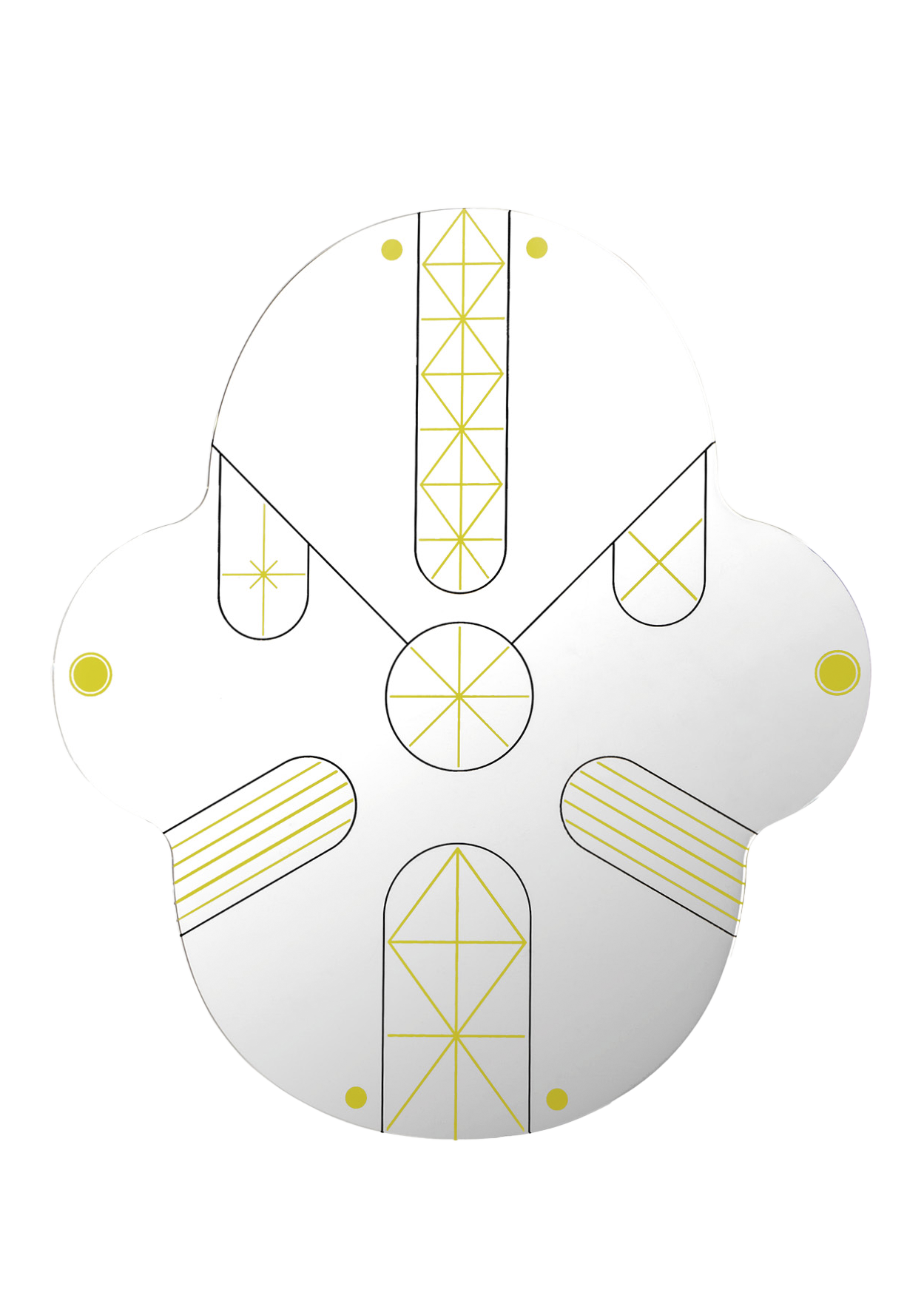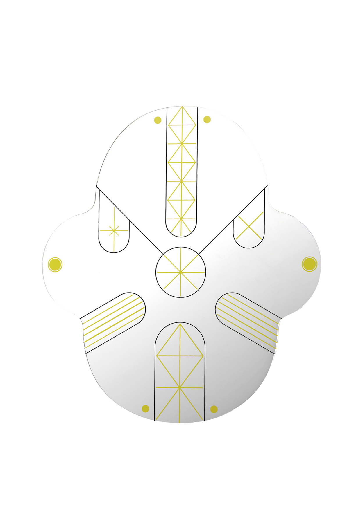 Jaime Hayon designed these two mirrors for BD. They represent two faces (King and Kong) and are available in two sizes. Gold and black geometric lines spread across the mirrors in symmetrical patterns. The silhouette of the mirrors is like that of a monkey’s face and can be placed alongside each other or individually.