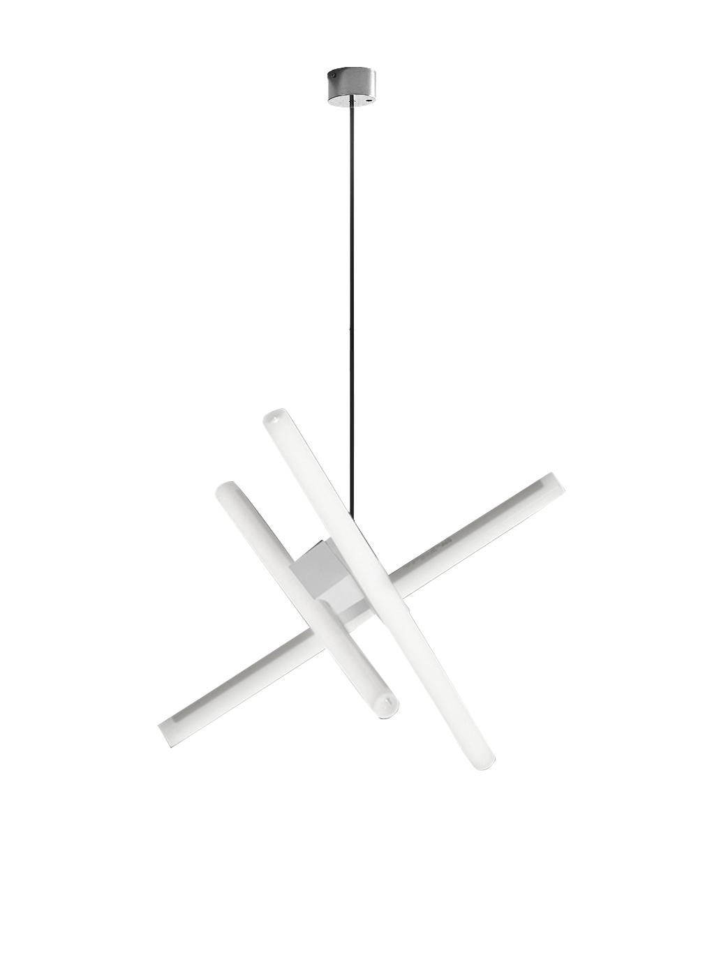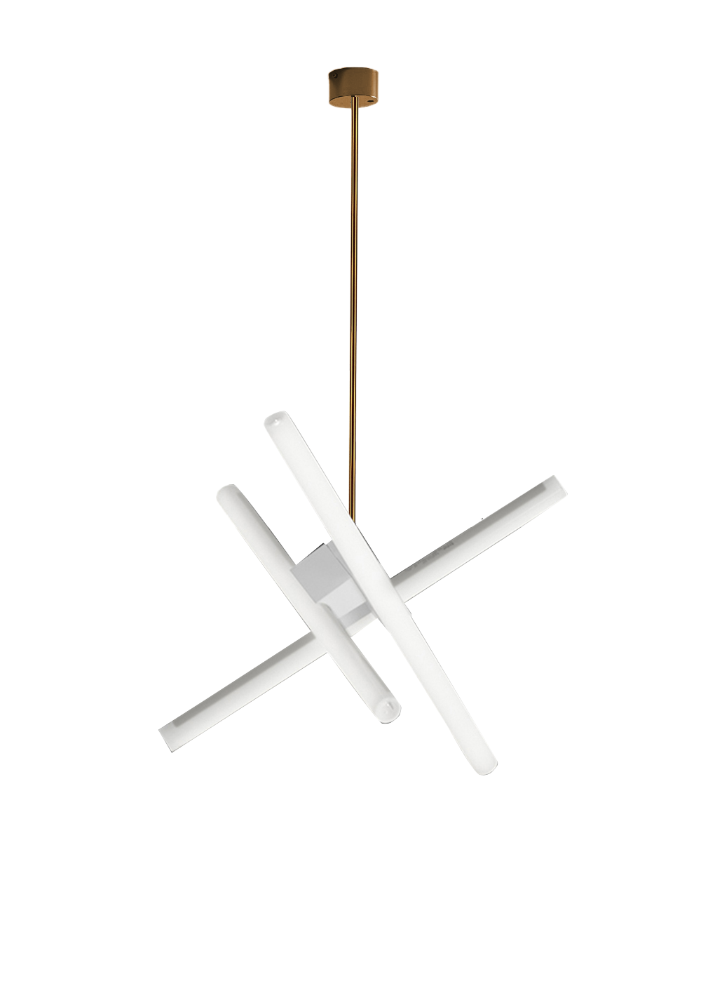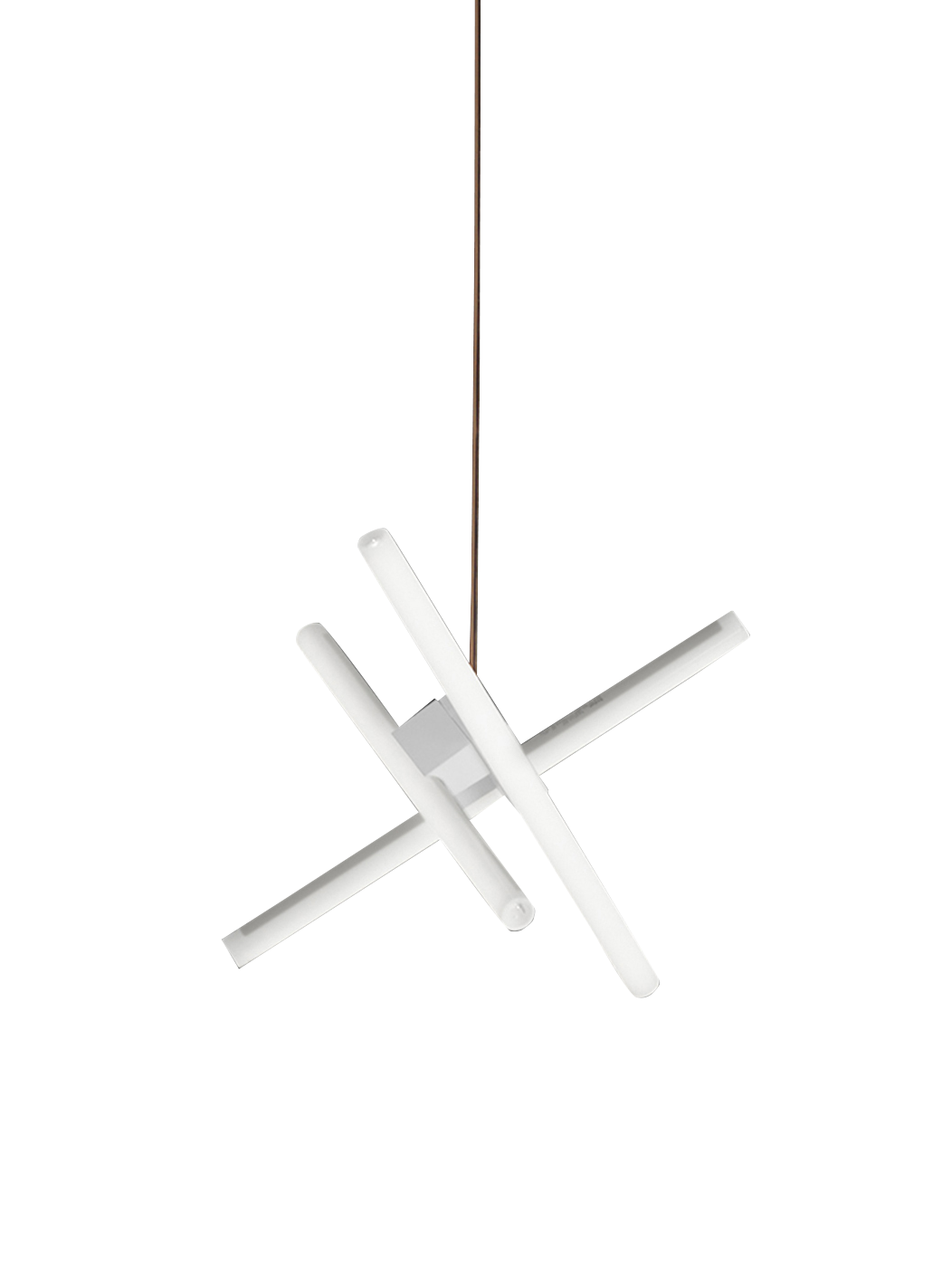 Pepe Cortés has always been a part of BD’s family. He designed the concept of these lamps in 1976, but they were left in a drawer and forgotten (the translation of ‘olvidada’ in English). He later found the design, and BD started producing it in 1984. It has been in the collection ever since. The pending lamp has a steel structure and lamp-holder centre. It is available with a polished copper rigid tube (maximum length of 183 cm) or a black cable with a brass polished rosette or a black rosette (maximum length of 3m). The interlocking cylinders of LED bulbs make the piece modern and recognisable, and the steel tubes line the cubed centre with a warm light.