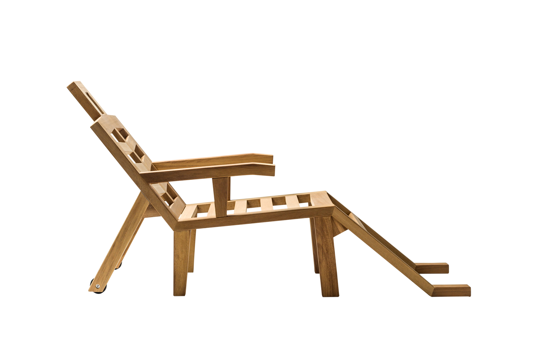 Dalí’s creativity and fascination with the human body takes the form of a sunbed, intimately created and exquisitely designed. Dalí’s original Portlligat was made in 1962 from olive tree wood for him and his wife Gala’s home in Costa Brava, Spain. This reproduction is available in Iroko wood which is resistant to changes in heat and moisture content, and optional upholstery for outdoor use. It resembles a body: it has a head, torso, ribs, arms, hands, legs and feet. The visible grain and unified structure present a strong and meaningfully arranged, figurative piece.